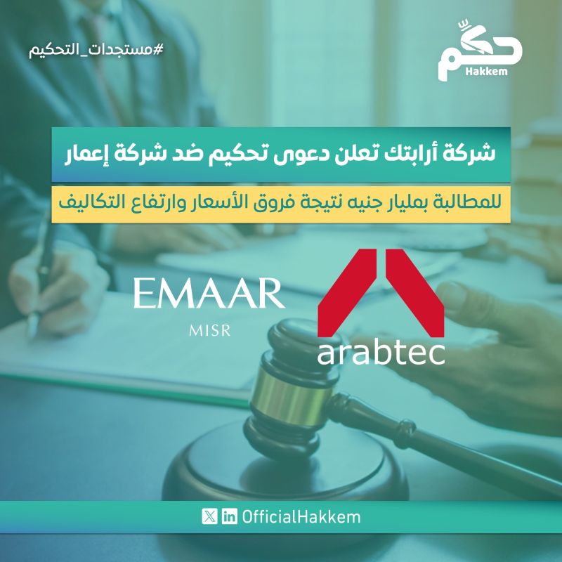 شركة ارابتك تعلن دعوي تحكيم ضد شركة اعمار للمطالبة بمليار جنية نتيجة فروق الاسعار و ارتافع التكاليف