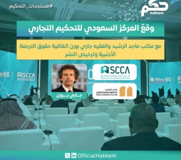 وقع المركز السعودي للتحكيم التجاري مع مكتب ماجد الرشيد والفقيه جاري بورن اتفاقية حقوق الترجمة الأجنبية وترخيص النشر